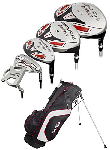 One of the best values in golf, the reaction 3 box set features a Lifetime warranty and game-enhancing technology for lower scores. The set includes a 460cc titanium Matrix driver with a high moment of inertia (MOI) which reduces Club head twisting for greater forgiveness and longer, more consistent shots. The oversized 3-wood is easily hit off the deck and produces accurate, high-flying shots because of its low center of gravity. For awesome approach shots, the forgiving #4 hybrid boasts a low center of gravity and makes hitting the Green and making Par easier. The oversized, stainless steel irons feature an undercut cavity for more forgiveness and a larger sweet spot. Finally, the high MOI mallet style PUTTER with an easy to use alignment aid delivers more accurate putts. The set comes with head covers for the driver, 3-wood, hybrid, and PUTTER and a lightweight dual strap stand bag with fast action stand.